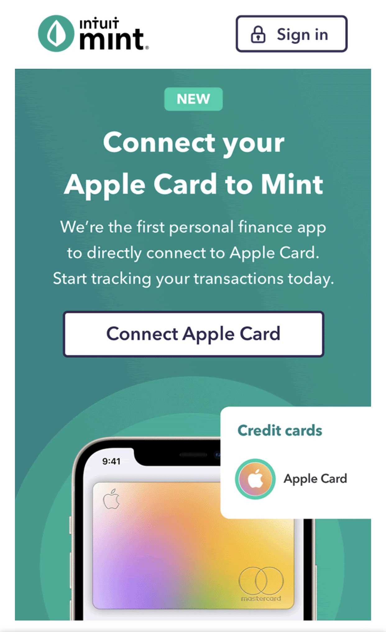 I know this is old but in case this helps once the credit card payment goes through from my bank I split that payment into individual transactions matching the monthly itemized breakdown. In order to link your Apple Card to your Mint account you can simply use the Find your. According to that report users can log in using Mint with 2-factor.